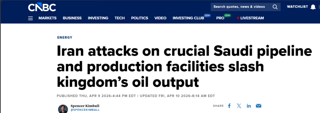 Efforts to bypass the Strait of Hormuz are also coming under strain, underscoring how limited true alternatives are in the current environment. Saudi Arabia’s East–West pipeline — a ~1,200 km network built to move crude from eastern oil fields to Red Sea export terminals — was recently hit by a drone strike that damaged one of its eleven pumping stations, temporarily reducing throughput by an estimated ~700,000 barrels per day. The pipeline is one of the few large-scale routes capable of partially offsetting disruptions in Hormuz, making even localized damage materially relevant to global supply expectations.